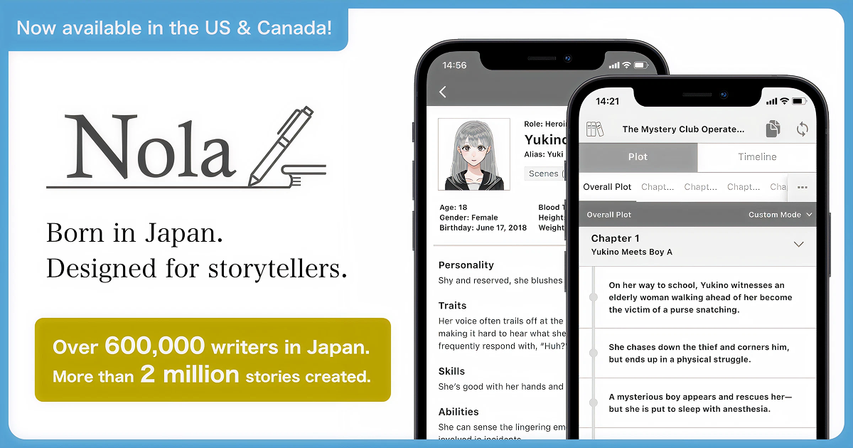 Tokyo-based indent inc. is pleased to announce the launch of the official English-language app for Nola: Story Planner & Writing, a dedicated editor tool designed to support structured storytelling for writers. This app, available on both iOS and Android, will be released in the United States and Canada starting October 2025.