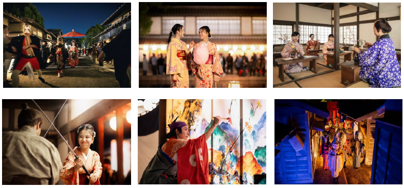 Uzumasa Kyoto Village, operated by Toei Uzumasa Eigamura Co.,Ltd. opened in 1975 and is regarded as the only theme park in Japan where visitors can observe the filming of “jidaigeki”, Japan’s period dramas and films. At its peak, it recorded over two hundred film productions annually.Now, guests can walk freely through the studio’s open sets that recreate the atmosphere of the Edo period, and can enjoy a variety of events and attractions such as the “Kaikai Yokai Festival” ghost festival, ninja themed performances, and samurai or oiran costume experiences.