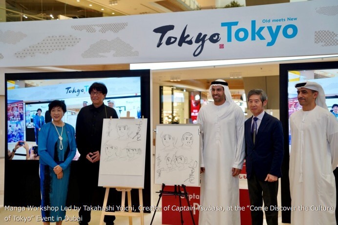 Takahashi Yoichi, the Japanese creator of the soccer-themed globally popular comic and animation series “Captain Tsubasa,” accompanied the governor on part of the four-nation trip as she pitched for investment in Tokyo’s content industry.
