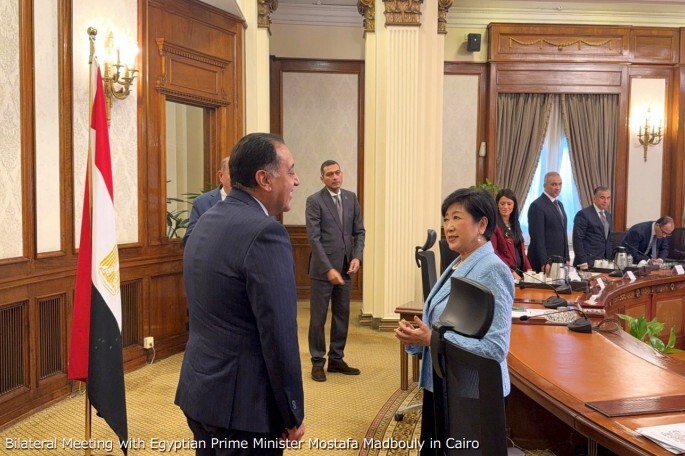 In Cairo, the governor held talks with Egyptian Prime Minister Mostafa Madbouly, in which she underscored the broad scope of cooperation between Egypt and Japan and noted the successful partnership between Tokyo and Cairo under a 35-year-old friendship-city framework. According to Egyptian media, the prime minister praised Japan’s contributions to what he described as a “monumental cultural gift from Egypt to the world.” Governor Koike also met Governor of Cairo Ibrahim Saber Khalil in the Egyptian capital.