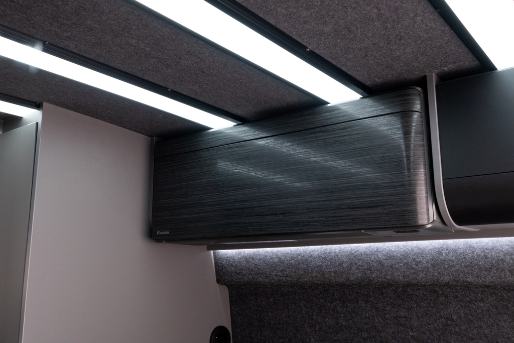 These include high-performance thermal insulation that minimizes temperature fluctuations inside the cabin, the company’s signature “Aero Window,” a high-efficiency solar power system co-developed with a major electronics manufacturer, and the “Cool Comp System,” which integrates a household air-conditioning unit into the vehicle.