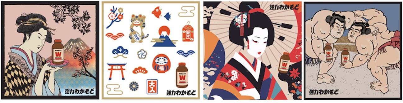 The hand towels come with four randomly selected designs: geisha, ukiyo-e, traditional Japanese patterns, and sumo wrestlers.