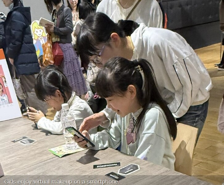 Small hands gripped smartphones, eyes fixed on the screens. Through AR and AI technologies, elementary and junior high school girls explored personal color analysis and virtual makeup experiences, their curiosity on full display.